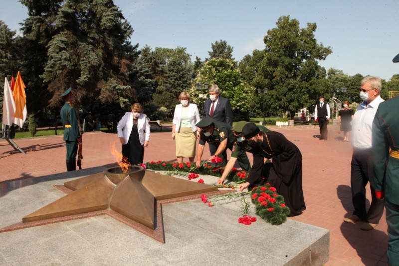 22 июня в День памяти и скорби — 80-ю годовщину начала Великой Отечественной войны, благочинный приходов Нижнедонского округа протоиерей Сергий Яценко возложил цветы к Вечному огню на площади 50-летия Победы, на мемориале «Аллея памяти» и к братской могиле войной Великой Отечественной войны.