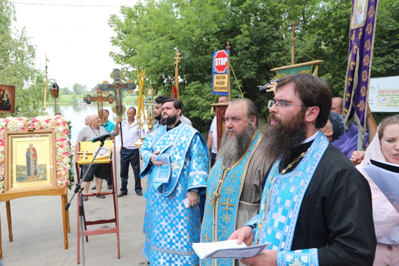 Пройдя пятикилометровый путь, духовенство вновь совершило молитву перед почитаемыми святынями и продолжило путь по реке на плавсредствах.