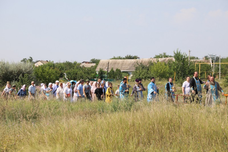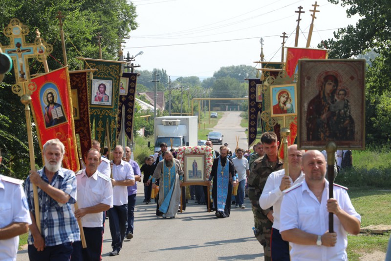 Крестный ход начал свое движение от Успенского храма Донецкого Успенского архиерейского подворья ст. Гундоровской. Епископ Шахтинский и Миллеровский Симон, духовенство епархии и прихожане храмов Донецкого благочиния, совершив молитву перед святынями – иконой с частицей мощей святого равноапостольного князя Владимира, иконой с частицей мощей святого князя Александра Невского и мощевиком с частицей мощей святой блаженной Матроны Московской, отправились пешим ходом до паромной переправы города Донецка.