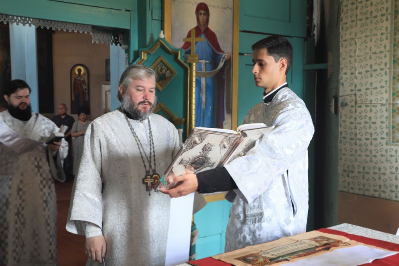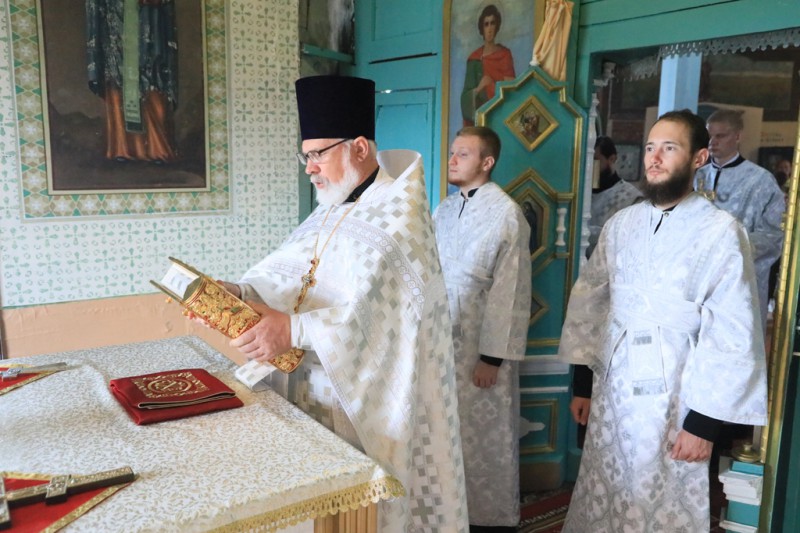 Его Преосвященству сослужили настоятель архиерейского подворья протоиерей Георгий Болоцков настоятель храма святого благоверного князя Александра Невского г. Шахты иерей Георгий Болоцков и диакон Трофим Осяк.