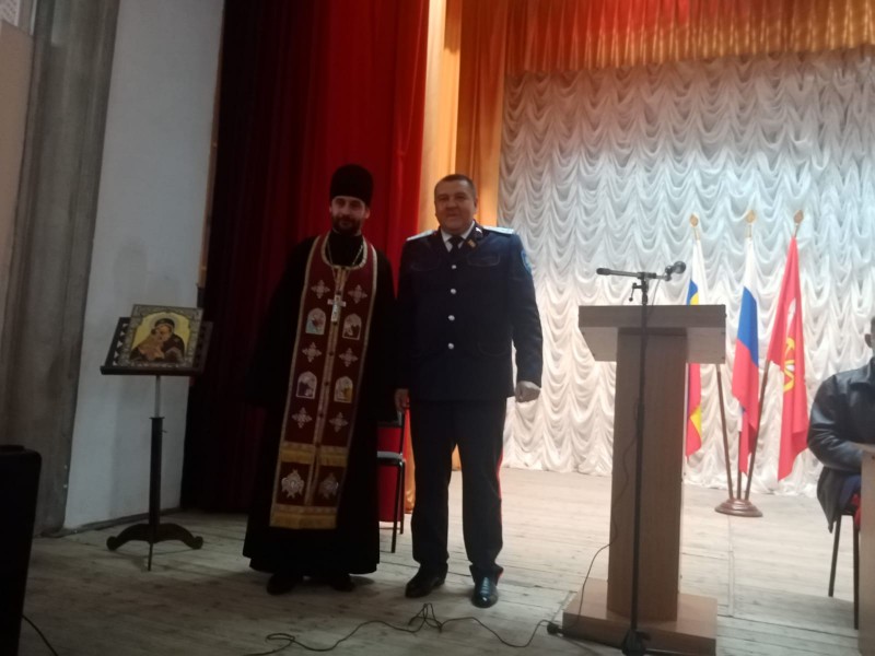 Духовнику Юрта, благочинному приходов Нижнедонского округа вручили памятный знак -«450 лет служения донского казачества Российскому государству».