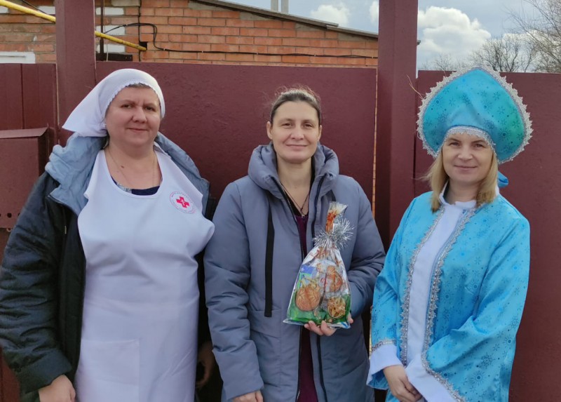 По благословению благочинного приходов Нижнедонского округа протоиерея Сергия Яценко, сестры милосердия Марфо-Мариинского Сестричества совместно с добровольцами молодежного семейного клуба «Верность» храма Архистратига Михаила п.Каменоломни Октябрьского района поздравили многодетные семьи и людей, попавших в тяжелую жизненную ситуацию с Новым годом и Рождеством Христовым.