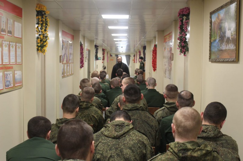 Настоятель храма святого великомученика Георгия Победоносца посёлка Новозарянский Октябрьского района Нижнедонского благочиния иерей Сергий Липень с пастерским визитом посетил военнослужащих 163 танкового полка, расположенного в посёлоке Персиановский Октябрьского района.