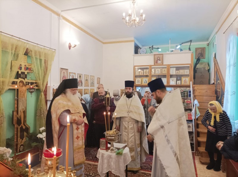 Соборное Богослужение совершили благочинный приходов Нижнедонского округа протоиерей Сергий Яценко, настоятель храма святой мученицы Татианы п. Персиановский иеромонах Николай (Наметышев), настоятель храма святой Троицы г. Шахты протоиерей Павел Шаповалов и клирик храма Архистратига Михаила п. Каменоломни диакон Максим Коваленко.