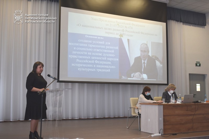 Под председательством главы Администрации Октябрьского района Людмилы Овчиевой состоялось отчетное собрание об итогах работы за 2021 год отдела образования. При соблюдении необходимых санитарно-противоэпидемических требований, мероприятие прошло в актовом зале нового блока начальной школы, расположенного на территории МБОУ СОШ № 61 п. Персиановского.