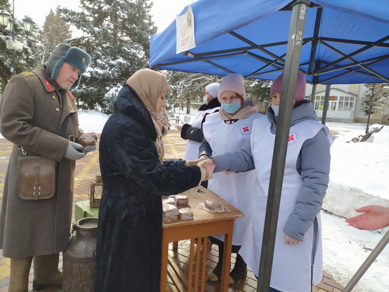 В поселке Каменоломни Октябрьского района акция «Блокадный хлеб» прошла на площади имени 50-летия Победы. Организаторами акции стали сотрудники районного Дворца культуры. В акции приняли участие и сестры милосердия Марфо-Мариинского Сестричества храма Архистратига Михаила п. Каменоломни.