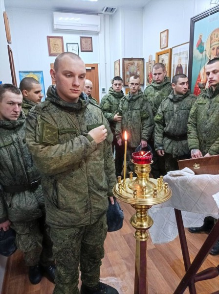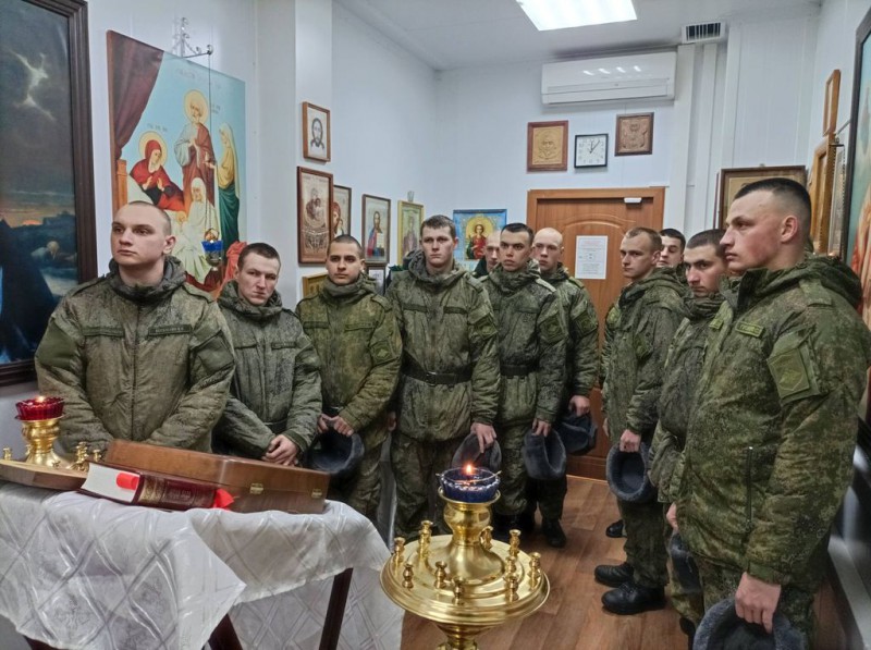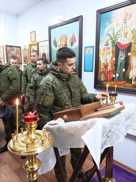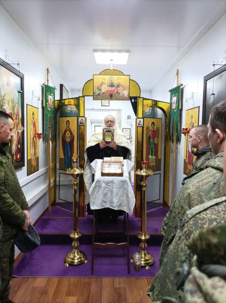 Духовно окормляющий военнослужащих 150-мотострелковой дивизии иеромонах Николай (Наметышев) в молитвенной комнате воинской части совершил молебен о восстановлении мира. Вместе со священником молились военнослужащие.