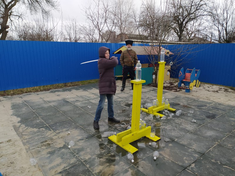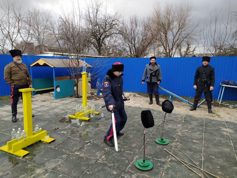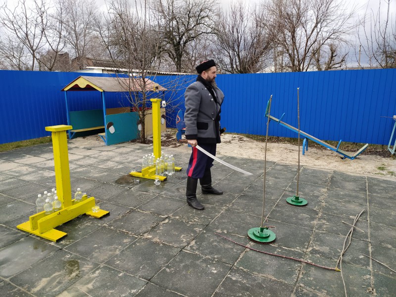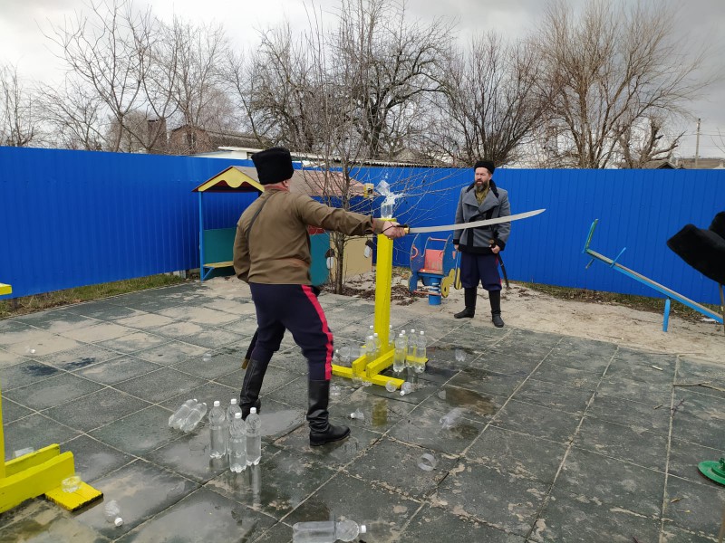 Турнир для молодых казачат провел и.о. командира пешей казачьей дружины Октябрьского района В.Д. Черный и казаки Нижнедонского юрта, входящие во Всероссийскую общественную организацию по рубке шашкой «Казарла».