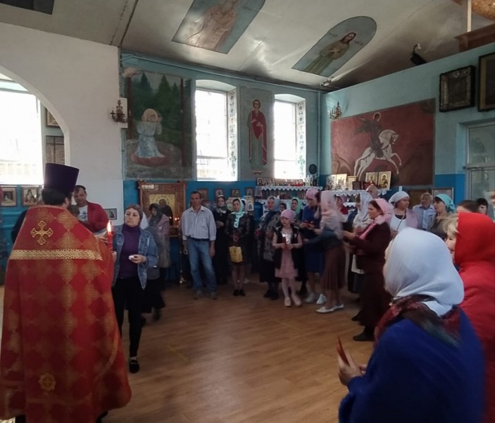 В храме Архистратига Михаила п. Каменоломни Октябрьского района верующие торжественно встретили Благодатный огонь.