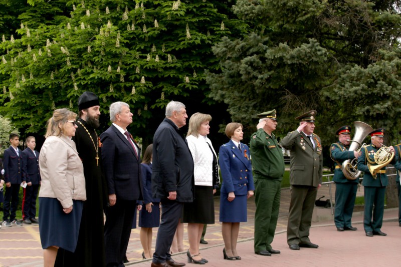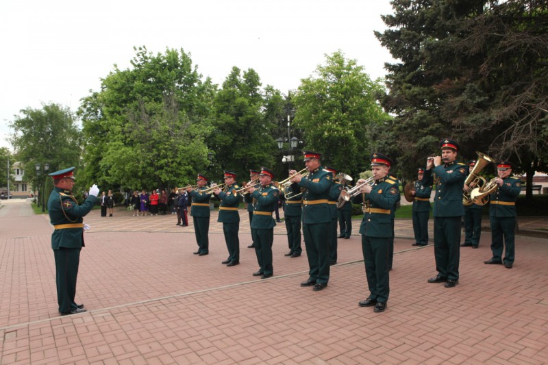 После возложения венка и цветов была объявлена минута молчания. Военный оркестр исполнил Гимн России.