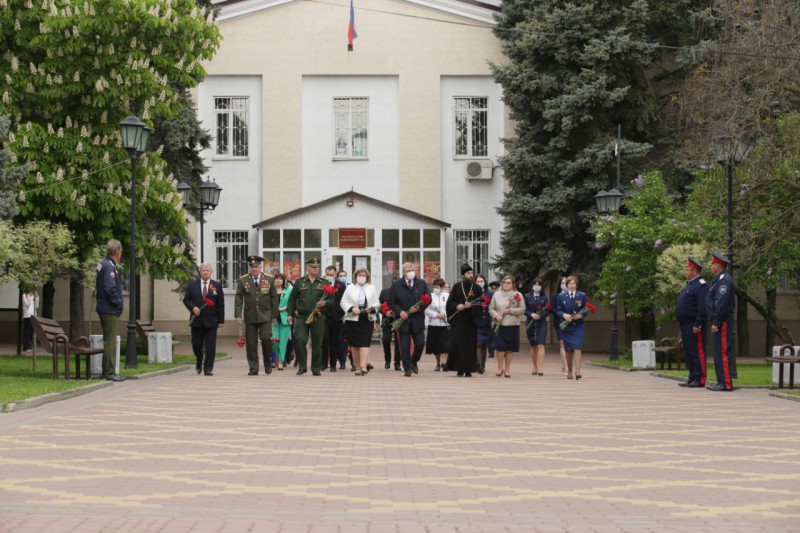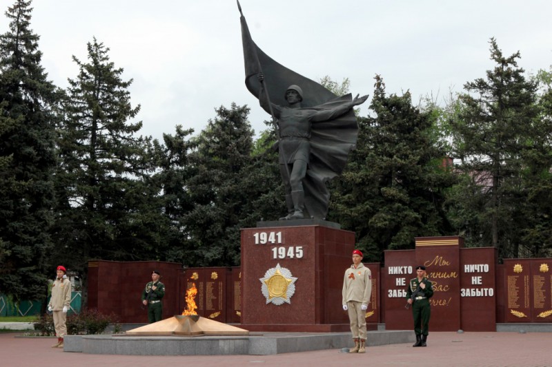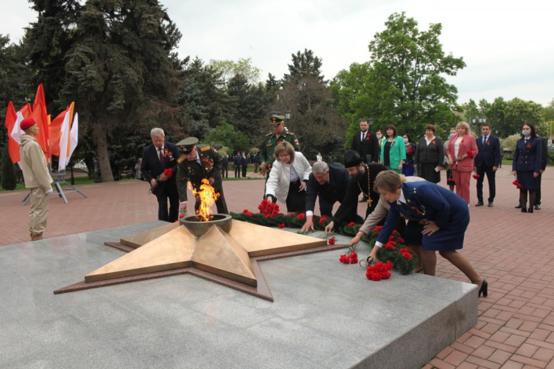 В канун 77-й годовщины Победы в Великой Отечественной войне, благочинный приходов Нижнедонского округа протоиерей Сергий Яценко принял участие в возложении цветов к Вечному огню на площади 50-летия Победы поселка Каменоломни Октябрьского района.