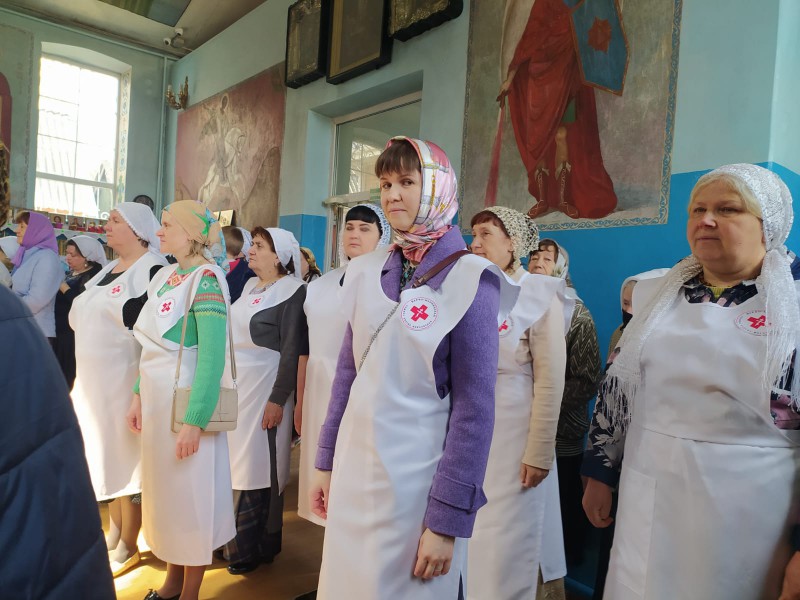 В этот день в храме Архангела Михаила п. Каменоломни Октябрьского района прошло праздничное Богослужение, после которого настоятель прихода протоиерей Сергий Яценко поздравил сестёр Марфо - Мариинского Сестричества и всех прихожанок с православным женским днем.