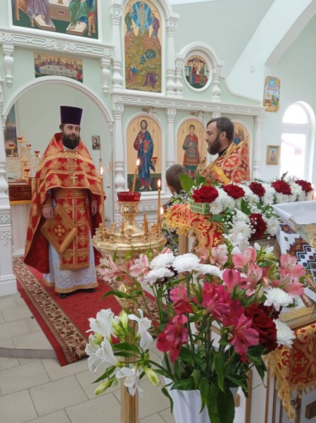 Обращаясь к молящимся, протоиерей Сергий рассказал о подвигах святого великомученика Георгия Победоносца и о его молитвенном заступничестве православному воинству и народу в годы Великой Отечественной войны.