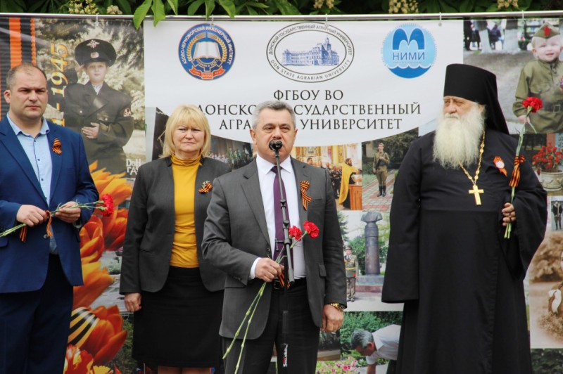 Завершилось шествие на площади перед учебным корпусом №1, где состоялся торжественный митинг с участием сотрудников и студентов университета, жителей Персиановского сельского поселения.