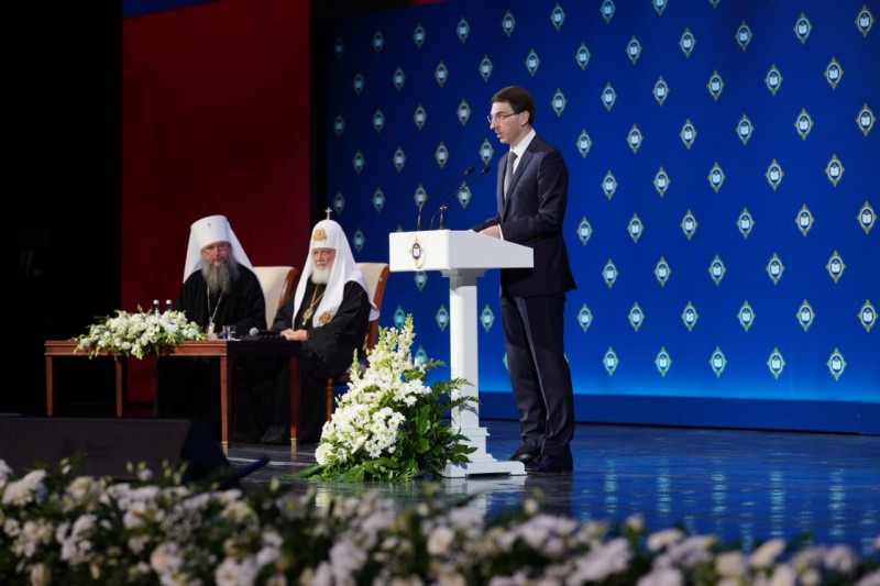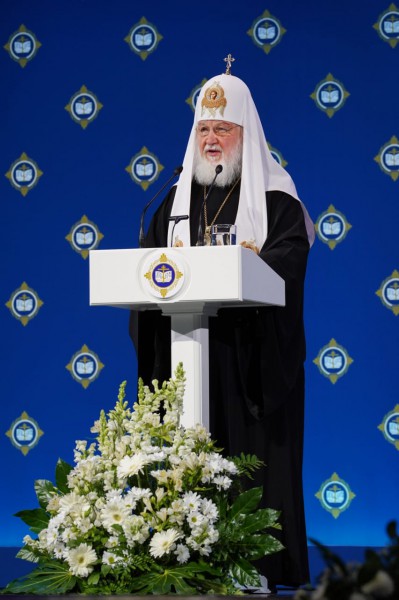Затем Святейший Патриарх Московский и всея Руси Кирилл обратился со словом к участникам торжественного собрания.