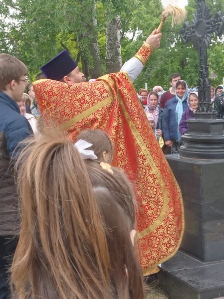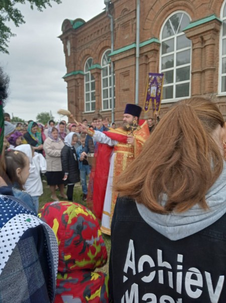 В завершение Божественной литургии по традиции был совершен крестный ход, после которого священник обратился к молящимся с поздравительным словом.