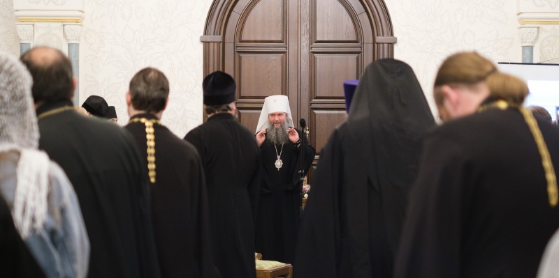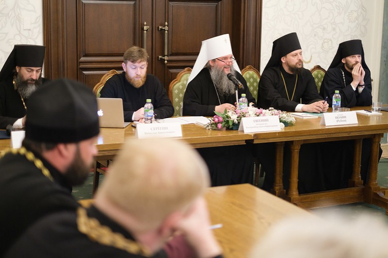 24 мая 2022 года в Белом зале Храма Христа Спасителя в рамках Международных образовательных чтений прошла рабочая встреча председателя Синодального отдела религиозного образования и катехизации митрополита Екатеринбургского и Верхотурского Евгения с руководителями епархиальных образовательных отделов.