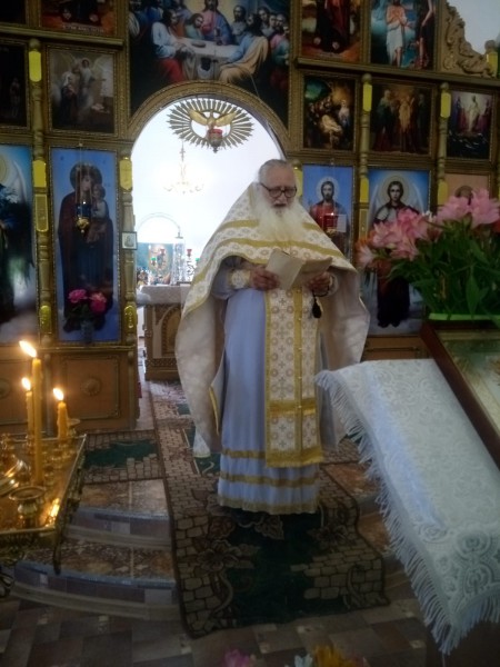 После совершения молебна у креста, священник обратился у молящимся с пастырским словом.