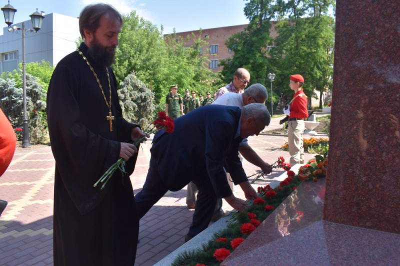 22 июня, в День памяти и скорби, Председатель Собрания депутатов-глава Октябрьского района Е.П. Луганцев, заместители главы Администрации Октябрьского района, председатель районной общественной организации «Союз Чернобыль» М.М.Харитонов, благочинный приходов Александровск-Грушевского и Нижнедонского округов протоиерей Сергий Яценко, представители общественных организаций, жители района, юнармейцы, военнослужащие 150-й мотострелковой дивизии приняли участие в церемонии возложения цветов и венков в п. Каменоломни на мемориалах «Аллея героев» и «Воинам Великой Отечественной войны».