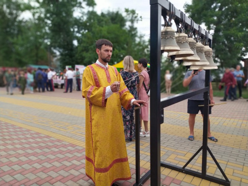 По благословению благочинного приходов Нижнедонского округа протоиерея Сергия Яценко, с целью возрождения древних традиций колокольного искусства, не задолго до фестиваля, в поселении установили малую передвижную звонницу и в рамках реализации в Октябрьском районе социальнозначимого проекта «Донские перезвоны» порадовали собравшихся праздничным колокольным звоном.