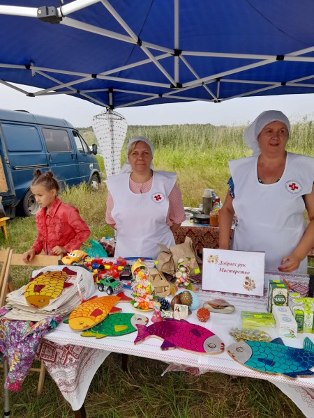 Для жителей поселения и гостей праздника сестры милосердия Марфо - Мариинского Сестричества храма Архистратига Михаила п. Каменоломни подготовили выставку декоративно-прикладного искусства "Добрых рук мастерство", в которую вложили духовно-эстетические ценности православной культуры и подготовили раздаточный материал литературы.